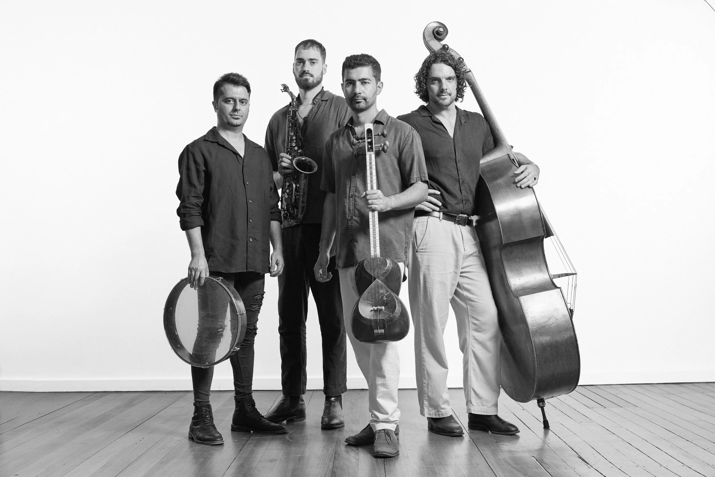 The ensemble's core lineup features world-class musicians, including Michael Avgenicos on saxophone, Adem Yilmaz on percussion, and Maximillian Alduca on double bass, with Sadeghi providing the group’s distinct Persian spirit on the tar. Their performances are often enhanced by guest artists, such as vocalist Sonya Holowell, accordionist Marcello Maio, drummer Alex Inman-Hislop and oud player Adnan Barake, bringing new sonic capabilities to the music.